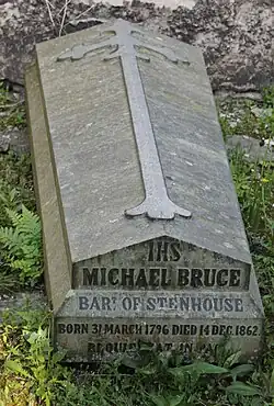 The Bruce Baronetcy, of Stenhouse in the County of Clackmannan, was created in the Baronetage of Nova Scotia on 29 September 1628 for William Bruce, with remainder to his heirs male whatsoever.[1] He was a descendant of Sir Robert Bruce of Clackmannan (14th century), who was also the ancestor of the ancestor of the Earls of Elgin. The eleventh Baronet was an author and adventurer.