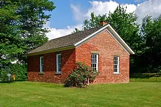 District #2, known as the Garfield School, is located at the corner of Moonlawn Road and New York State Route 2 (Brunswick Road).[14] The school was originally named for President James A. Garfield, who occasionally taught nearby.[15] It was owned by BCSD until the mid-1980s when it was transferred to the Town of Brunswick. It currently houses the Brunswick Community Library and Brunswick Historical Society and was added to the National Register of Historic Places in 1988.[16]