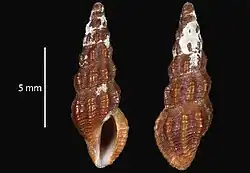 5. ^ Morassi, Mauro; Bonfitto, Antonio (2013). "Four new African turriform gastropods (Mollusca: Conoidea)". Zootaxa. 3710 (3): 271–280. doi:10.11646/zootaxa.3710.3.5. ISSN 1175-5326. PMID 26106689.