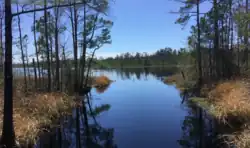 Buffalo City was a logging and moonshine town in East Lake Township, Dare County, North Carolina, United States. It was on the mainland, 19 miles (31 km) west of Manteo near present-day Manns Harbor. The marshy land where Buffalo City once stood, near U.S. 64, is now part of the Alligator River National Wildlife Refuge. The town's history lasted approximately 80 years from the 1870s to 1950s, but at one time Buffalo City's population of 3,000 in the early 20th century made it the largest community in Dare County.[1] A hotel, post office, schoolhouse, general store, 100 miles (160 km) of railroad track and rows of homes once stood on the now-abandoned area. Today, the only remnants of the ghost town include a road sign, rusted rails and building debris now overgrown with weeds.