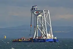In April 2015 A2SEA was contracted to for turbine installations,[51][52][53] and Jan De Nul contracted to install the offshore export cable.[54] In June 2015 Van Oord were contracted for foundation installation.[55][56] In October 2015 DONG Energy's two 200 tonne transformers were delivered by Collett & Sons Ltd[57] to the onshore substation via 550 Tonne capacity girder bridge. In early 2016 DONG Energy acquired a lease on Cammell Laird's yard in Birkenhead to be used as a base during the construction of the wind farm.[58]