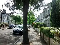 A tree-lined road in the Bushwood area of Leytonstone