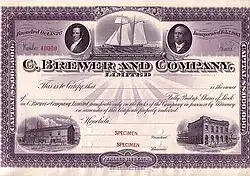 ![]() C.Brewer and Company Specimen Stock Certificate #A0000, made by American Bank Note Co. | |