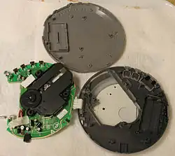 A portable CD player is a portable audio player used to play compact discs. Portable CD players are powered by batteries and they have a 1/8" headphone jack into which the user plugs a pair of headphones. The first portable CD player released was the D-50 by Sony.[58] The D-50 was made available on the market in 1984,[59] and adopted for Sony's entire portable CD player line.