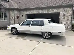 The Fleetwood line was redesigned for the 1989 model year to include skirted rear wheels. The Fleetwood coupe remained on the 110.8 in (2,810 mm) wheelbase, while the sedan's wheelbase increased by 3 inches (76 millimetres). The slightly revised Fleetwood coupe, with extended front and rear styling, was sold from 1989 and ended in 1992.