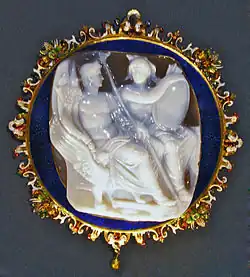 Thanks to Macro's preparations on his behalf, Caligula's accession was a "brilliantly stage-managed affair".[49] The legions had already sworn loyalty to Caligula as their imperator. Now Caligula gave the miserly Tiberius a magnificent funeral at public expense, and a tearful eulogy,[36] and met with an ecstatic popular reception along the funeral route and in Rome itself. Among Caligula's first acts as emperor was the provision of public games on a grand scale. Philo describes Caligula in these early days as universally admired.[50] Suetonius writes that Caligula was loved by many, for being the beloved son of the popular Germanicus.[51] Three months of public rejoicing ushered in the new reign.[52] Philo describes the first seven months of Caligula's reign as a "Golden Age" of happiness and prosperity.[53] Josephus claims that in the first two years of his reign, Caligula's "high-minded... even-handed" rule earned him goodwill throughout the Empire.[54][55]