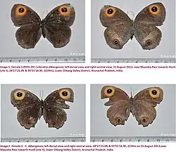 - ^ a b c d Roy, P. (2013). "Callerebia dibangensis (Lepidoptera: Nymphalidae: Satyrinae), a new butterfly species from the eastern Himalaya, India". Journal of Threatened Taxa. 5 (13): 4725–4733. doi:10.11609/JoTT.o3293.4725-33.