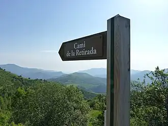 Camí de la Retirada (Catalan: [kəˈmi ðə rə.tiˈɾa.də], Spanish: Camino de la Retirada) ("Path of the Retreat") refers to routes and paths in the eastern Pyrenees used by Republican exiles at the end of the Spanish Civil War. One of the best known paths, today signposted as a trail for hiking or biking, runs for 14 kilometres (8.7 mi) from Molló to Prats de Molló via Col d'Ares at 1,513 metres (4,964 ft) above sea level.[1] It is estimated that about 100,000 people of all ages used this path in January and February, 1939.[2]