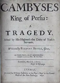 Cambyses, King of Persia is 1671 tragedy by the English writer Elkanah Settle about Cambyses II.