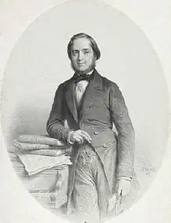 Finally it was an encounter with Friedrich Kalkbrenner that decided Stamaty's fate. Kalkbrenner had been looking for a pupil who would continue his school for some time. He had considered Frédéric Chopin,[5] but Chopin on the advice of his teacher Józef Elsner had turned him down.[6] The same had happened with Charles Hallé. Hallé, too, had at first sought out Kalkbrenner to become his pupil, but Kalkbrenner's stiff, old-fashioned playing deterred Hallé so much that he decided otherwise.[7]