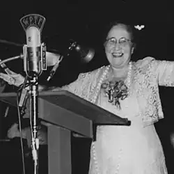 She said that women and mothers were the only people fit to be advocates of child welfare.[1] In 1909, she founded the Memphis branch of the Parent-Teacher Association, eventually rising to the position of chairman of the Memphis federation of the organization.[3] She then began studying state child welfare laws and child psychology.[1] She also served as the secretary of the City Agricultural Committee during World War I.[1][3] Although not a lawyer, she worked for years in the law office of her husband, Thomas Fitzgerald Kelley.[1] After his death, and with the aid of Memphis mayor "Boss" Crump, Camille Kelley was appointed and then elected as the juvenile court judge in Shelby County, Tennessee, and served from May 1, 1920 to 1950.[3][4] She was the first woman in the South to serve in this position.[5] As she initially was an unelected official, her rulings were the subject of multiple constitutional lawsuits by parents whose children had received her sentences.[6] However, in 1921, women were granted the right to vote and the Tennessee state legislature created an independent municipal family court for Shelby County; both events legitimized her position.[6] She was reelected a total of seven times.[7] Known as the "Little Irish Judge," she never wore a judicial robe in court, opting instead for colorful dresses, jewels, and always a flower pinned to her shoulder. She was quoted as saying, "Robes would scare the children to death. They're not so timid when they appear before me and see that I am wearing a flower."