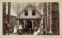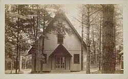 Following a wave of Methodism sweeping through regions of New York and New England, the Pine Grove campground became a mecca for faithful pilgrims.[5] It began in the summer of 1860, when the Poughkeepsie district of the Church held a modest week-long camping retreat, in which attendees pitched tents on what was then rented picnic grounds. However, attendance grew steadily in the years following its official establishment in 1871. By the late 1870s-early 1880s, there were as many as 10,000 guests at Pine Grove, coming from as far away as Hartford, New Haven and New York City.[1] A seasonal railroad station on the Housatonic R.R. was established to facilitate travel for the high volume of visitors.[6] By this time, an ample collection of Victorian cottages had been built on the property, along with a lodging house, called the Mountain View Inn.[7]