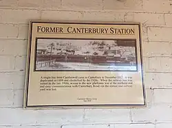 Canterbury station opened on 1 December 1882, when the railway line from Camberwell was extended to Lilydale.[4] Like the suburb itself, the station was named after Viscount Canterbury, Governor of Victoria between 1866 and 1873.[5][6]