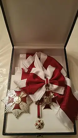 The Capítulo Noble de Fernando VI (English translation: Noble Chapter of Ferdinand VI) is a nobiliary corporation, with membership awarded to individuals on the basis of their status as nobility and their merit.[1] The Capítulo Noble de Fernando VI is under the protection of Rafael Melgarejo de la Peña, the Duke of San Fernando de Quiroga.[2] The Capítulo Noble de Fernando VI is dedicated to King Ferdinand VI of Spain and Queen Bárbara of Braganza.[1]