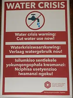 293. ^ Pitt, Christina (10 September 2018). "City of Cape Town relaxes water restrictions, tariffs to Level 5". News24. Archived from the original on 12 December 2018. Retrieved 10 September 2018.