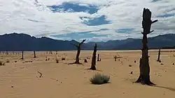 Agriculture is an important industry in the Western Cape. The wine industry in the Western Cape drew 1.5 million tourists in 2017, and together with the deciduous fruit industry employs about 340,000 workers and contributes more than 10% to the Western Cape economy. Many of the crops are also water intensive; for instance, a vineyard needs between 10 and 24 inches of water to survive. On average, the agriculture sector in the Western Cape had to cut its water use by 60 percent from 2017 to 2018, resulting in smaller yields and an estimated economic loss of R5.9 billion (US$400 million), 30 000 jobs and a 13–20 percent drop in exports.[16] Some estimates put the figure higher at R14 billion (US$1 billion).[67]