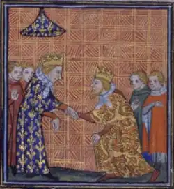 In 1307, Edward was succeeded by his son Edward II. On 25 January 1308, he married Isabella, daughter of Philip of France, to further resolve the tension between the two crowns. It is, however, during Edward's reign that the territorial extent of the Duchy of Aquitaine slowly dwindled due to a series of legal proceedings in an effort by the French crown and Parlement to take the last remaining Plantagenet foothold in the kingdom without any bloodshed. It is due to one of these legal proceedings that the town of Saint-Sardos switched hands in 15 October 1323. The following day, a local lord named Raymond-Bernard of Montpezat was upset by the decision and raided Saint-Sardos, razing it to the ground. The French government then accused Ralph Basset, the Seneschal of Gascony, of perpetrating the crime by association. Despite Edward's best efforts to diplomatically resolve the crisis caused by his vassal over the course of almost a year, a French army led by Charles of Valois invaded Gascony with very little resistance in August 1324. This humiliation was partially what led to Edward's downfall back in England. On 31 March 1325, Gascony was handed back to the Plantagenets after a truce.