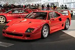 The Ferrari F40 was a mid-engine sports car produced from 1987 to 1992 to celebrate Ferrari's 40th anniversary of the company's founding in 1947.[35] Of the eleven known Ferrari F40s purchased by the Sultan of Brunei, ten underwent cosmetic and performance modifications performed by Italian car designer firm Pininfarina, with nine of the cars being modified under the supervision of Paolo Garella, the Pininfarina Prototype Manager of the 1990s.[36]
