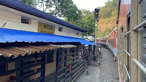 Caranzol Railway Station (station code: CRZ) is a small railway station in South Goa district, Goa. It serves Caranzol village. The station consists of 1 platform. The platform is not well sheltered. It lacks many facilities including water and sanitation. This station is one of three in the Braganza Ghats. This is the last station in Goa before the line passes into Karnataka.[1]