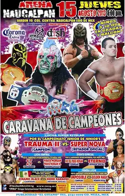 7. ^ a b c Reyes Ruiz, Eduardo (August 15, 2013). "En la Caravana de Campeones IWRG, el Trauma II acabo con Súper Nova". Estrellas del Ring (in Spanish). Retrieved April 22, 2016.