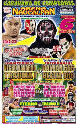 La Dinastia de la Muerte ("The Dynasty of Death"; the father/son team of Negro Navarro and Trauma I) became the 18th overall holders of the IWRG Intercontinental Tag Team Championship on March 18, 2012 when they defeated Las Piratas (El Hijo del Pirata Morgan and Pirata Morgan).[13] the May Caravana de Campeones would be the first time the team put the championship on the line after winning it.