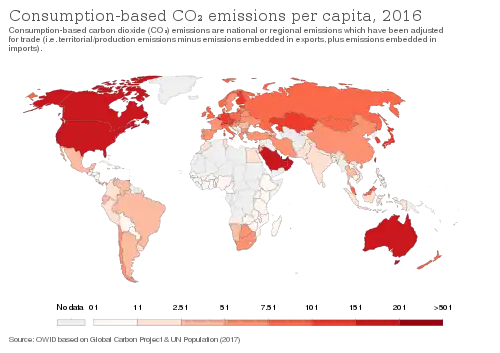 26. ^ "Are consumption-based CO₂ per capita emissions above or below the global average?". Our World in Data. Retrieved 7 July 2023.