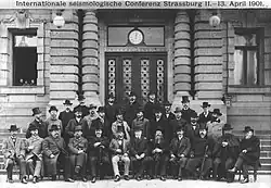Schmidt (seated fourth from left) at the first seismological conference, Strassbourg, 1901