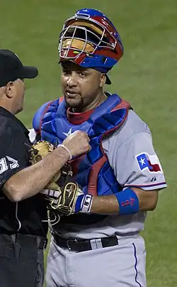 Carlos Fernando Corporán (born January 7, 1984) is a Puerto Rican former professional baseball catcher. He played in Major League Baseball (MLB) for the Milwaukee Brewers, Houston Astros, and Texas Rangers.