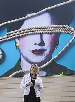 She represented Spain with a gallery of mirrors at the Venice Biennale in 1997, together with the Catalan poet Joan Brossa.[10] In 2003 the Museo Reina Sofía dedicated an exhibition about her work. From 2 December 2016 to 29 January 2017, her exhibition Carmen Calvo. Todo procede de la sinrazón (1969–2016) was held at Sala Alcalá 31 in Madrid.[11]