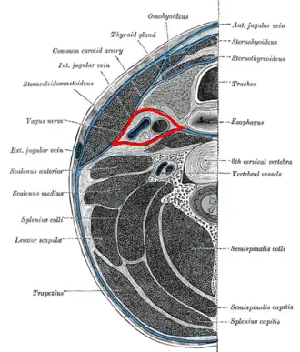 2. ^ a b c d e f g h i j k l m n o p Garner, Darren H.; Kortz, Michael W.; Baker, Stephen (2022), "Anatomy, Head and Neck, Carotid Sheath", StatPearls, Treasure Island (FL): StatPearls Publishing, PMID 30137861, retrieved 2022-12-27
