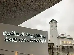 The Casa-Voyageurs Railway Station (Arabic: محطة الدار البيضاء المسافرين; French: Gare Casa-Voyageurs) is an ONCF (French: Office national des chemins de fer, "Moroccan National Railway") station in the Belvedere neighborhood of Casablanca.