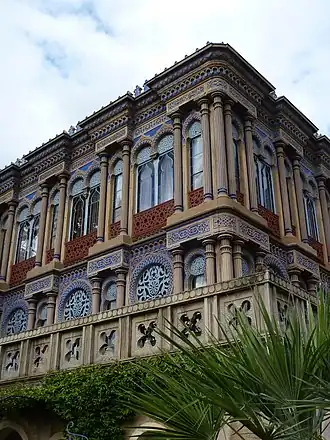 It was designed in the Moorish RevivalArab-Andalusian style, with elaborate facades, architectural elements, and fine detailing.
