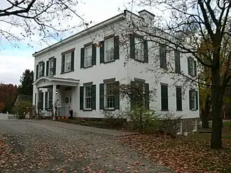 Casparus F. Pruyn House is a historic home located in the hamlet of Newtonville within the town of Colonie in Albany County, New York.[2] It is a two-story, rectangular five bay wide, center entrance dwelling in a late Federal and early Greek Revival style. It was built between 1824 and 1836. Pruyn was rent collection agent for Stephen Van Rensselaer and, after Stephen's death, William Van Rensselaer who had inherited the "East Manor" in Rensselaer County. From 1839 to 1844 Pruyn resided at the Patroon Agent's House and Office at Rensselaer and was a central figure in the Anti-Rent War at Rensselaerswyck. Also on the property are a contributing carriage house, privy, and smoke house.[3] It is open to the public as the historical and cultural arts center for the Town of Colonie. The Verdoy Schoolhouse was moved to the grounds in 1996.