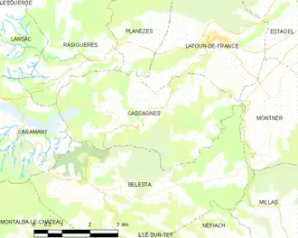 Cassagnes is located in the canton of La Vallée de l'Agly and in the arrondissement of Perpignan.
