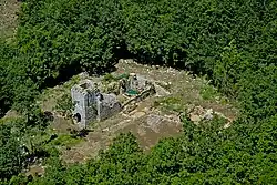 The site also contains the ruins of the castle, which dates back to 1100 AD. Part of the tower and its walls, which were erected by the Cacciaconti di Trequanda family at the beginning of the XIII century remain visible.[2]