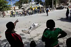 Soon after the quake struck appeals for international aid were issued by Haitian government officials, including Raymond Joseph, Haiti's ambassador to the United States. Neighboring Dominican Republic was one of the first countries to give aid to Haiti.[34] And the non-governmental organization Giving Children Hope distributed much-needed medicines and supplies.[35] International organization also began large-scale fund raising campaigns for aid to Haiti, including campaigns by the International Red Cross[36] and relief charities in Britain.[37]
