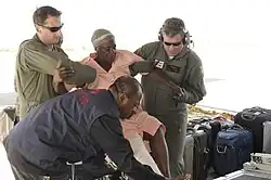 In addition, the government of the United States issued orders for deployment to the United States Army's 1st Battalion, 73rd Infantry from Fort Bragg, North Carolina, which is scheduled to deploy along with the aircraft carrier USS Carl Vinson.[39] The U.S. Navy also announced on 13 January 2010 that the hospital ship Comfort and amphibious helicopter carrier Bataan will be deployed to assist in the humanitarian relief efforts.[40] The American government also announced that it would provide $100 million for the aid effort in Haiti.[41] Partners in Health, the largest health care provider in rural Haiti, also provided aid from Port-au-Prince.[42] Despite the domestic and international relief efforts, many Haitians in the initial days after the earthquake did not have access to health care.