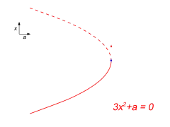 When a < 0, the potential V has two extrema - one stable, and one unstable. If the parameter a is slowly increased, the system can follow the stable minimum point. But at a = 0 the stable and unstable extrema meet, and annihilate. This is the bifurcation point. At a > 0 there is no longer a stable solution. If a physical system is followed through a fold bifurcation, one therefore finds that as a reaches 0, the stability of the a < 0 solution is suddenly lost, and the system will make a sudden transition to a new, very different behaviour. This bifurcation value of the parameter a is sometimes called the "tipping point".