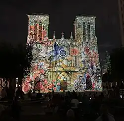 Starting in June 2014 and continued presently, the majestic façade of the San Fernando Cathedral has featured "San Antonio: The Saga", a unique video art projection by international artist Xavier de Richemont. Its 24-minute runtime depicts the historical discovery, settlement and development of San Antonio, the Lone Star State, and United States history.[7] Showtimes are managed by the Main Plaza Conservancy, a nonprofit organization that focuses on preserving the historical significance of the Main Plaza, which is part of the Main and Military Plazas Historic District.