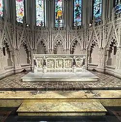 During Lent 2024, as part of ongoing restoration efforts under Dean Sniffen, the High Altar was restored to its original 1885 configuration. The restoration involved disassembling, cleaning, and repairing the intricate stonework in situ, repositioning the side panels that had been rotated ninety degrees in the 1950s back to their north and south orientations, and repairing the marble inlays. The restoration returned the upper sanctuary to its original layout, providing more space around the altar and restoring functionality to the canon's and presider's stalls.