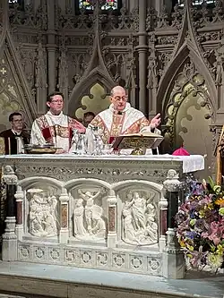 Bishop Provenzano presiding at the newly restored High Altar, returning to its original configuration and placement, Easter Vigil 2024