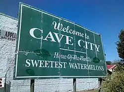 The Cave City welcome sign boasts that the town is the "Home of the World's Sweetest Watermelon".