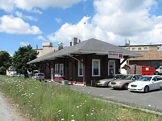 Wakefield Centre station is a former railway station at 57 Water Street (Route 129) in Wakefield, Massachusetts. Built in the early 1870s, it is a surviving element of the railroad infrastructure that enabled Wakefield's growth as an industrial center in the late 19th century. The depot was added to the National Register of Historic Places in 1989 as Centre Depot. As of 2008, the former depot serves as a restaurant.[1] Today, it is a stop on the Wakefield-Lynnfield Rail Trail in progress.