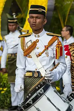 As a Commonwealth member, Malaysia sports military bands that are very similar to the British as well as other commonwealth countries. This is especially true in the case of the Band of the Royal Malay Regiment, which fields their percussion section (specifically snare drums) at the front similar to the Royal Marines. It is also of the few commonwealth military bands that use sousaphones when on parade, with others including New Zealand, Singapore and Fiji.