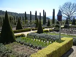 The gardens were begun in 1978 by the owner, Cécile Chancel, with the help of landscape designer Tobie Loup de Viane. The garden was finished in its present form in 1990 and became a Remarkable Garden of France in 2005.[2] The garden is built on three terraces cut into a hillside overlooking the vineyards.