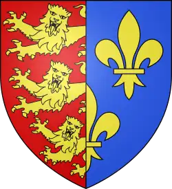 - ^ The Goulaine coat-of-arms, parting England and France, accompanied by the motto, "De cettuy-cy, de cettuy-là, j'accorde les couronnes,"— "Of this one and that I award the crowns"— is recorded in Pol Potier de Courcy, Nobiliaire et Armorial de Bretagne, who records that Jean de Goulaine, Captain of Nantes, was sent by Geoffroy, duke of Brittany, to arrange peace between Henry II of England and Philip Augustus of France in 1180, occasioning the arms and motto carried by the Goulaine since; see also Saint-Allais 1816.