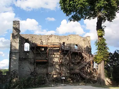 The ruins of the 10th-century keep, undergoing repairs