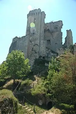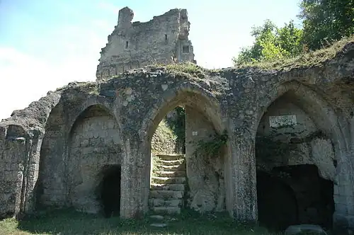On the second and third levels of the promontory, a network of galleries and underground staircases was dug, allowing access to the castle and to reach the keep and its moat (14th - 15th centuries). In the west are remains of advanced defences and, probably, the motte protecting the home from the first lords up to the 11th century. However, excavations have shown that this part of the site was occupied since protohistory, if not the Neolithic era.