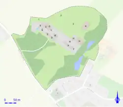 After the end of the business, José van Pamel sold his property. The château was sold in 1989 and the outbuildings on 16 March 2003.[43] It was acquired by a Dutch painter and artist, Krijn Giezen, and his wife Martina, a publisher.[41] They moved into the château, then into the outbuildings.[44] He is the founder of Land art in his country,[45] and of ecological art in 1950.[41][46] The couple seems intent on bringing the estate back to life by opening a museum dedicated to contemporary art.[47] The estate is used for exhibitions and as a workshop.[45]