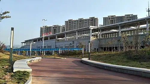 Changping East railway station (simplified Chinese: 常平东站; traditional Chinese: 常平東站; pinyin: Chángpíng Dōng Zhàn; Jyutping: Soeng4ping4 Dung1 Zaam6) is a railway station in Changping, Dongguan, Guangdong, China. It opened on 30 March 2016,[1][2] and was the western terminus of the Guangzhou–Huizhou intercity railway before the extension to Daojiao opened on 28 December 2017.[3]